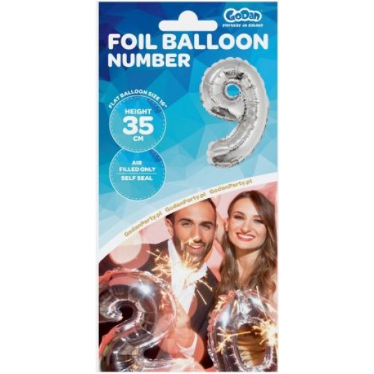 BALON FOLIOWY 35CM CYFRA SREBRNA 9