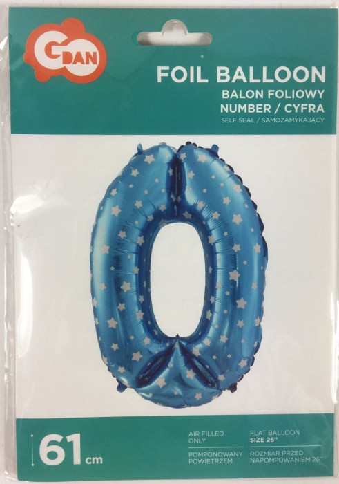 BALON FOLIOWY 61CM CYFRA NIEBIESKA 0