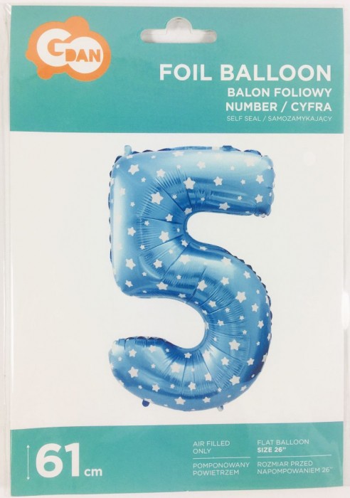 BALON FOLIOWY 61CM CYFRA NIEBIESKA 5