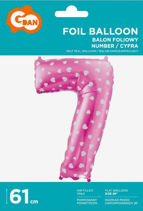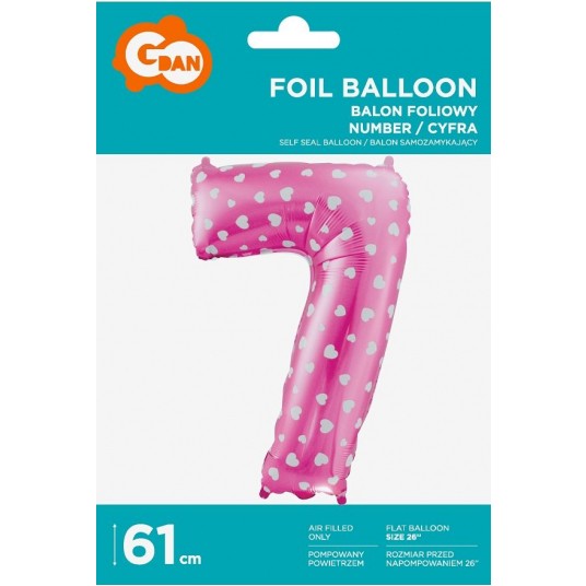 BALON FOLIOWY 61CM CYFRA RÓŻOWA 7
