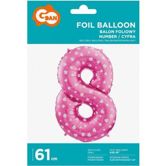 BALON FOLIOWY 61CM CYFRA RÓŻOWA 8