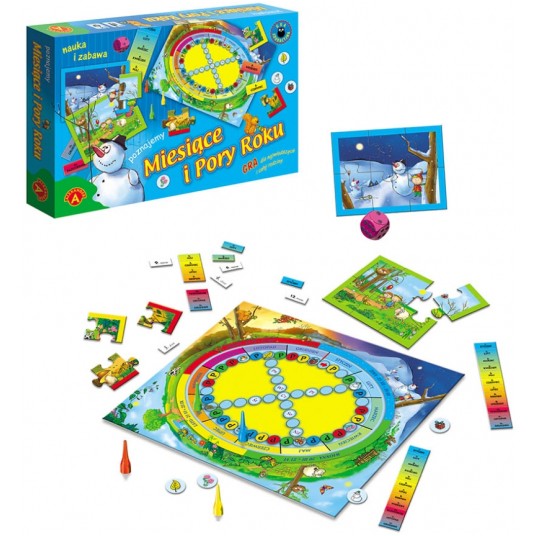 Gra planszowa „Poznajemy miesiące i pory roku” zapewni świetną zabawę i wiele prawdziwych emocji zarówno dzieciom jak i dorosłym, którzy będą im towarzyszyć. Oprócz planszy, pionków i kostki w grze