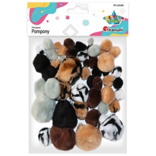 POMPONY AKRYLOWE ANIMAL MIX 54 SZT.