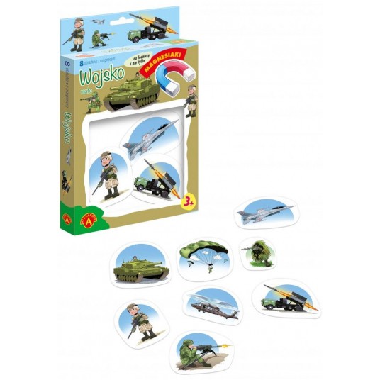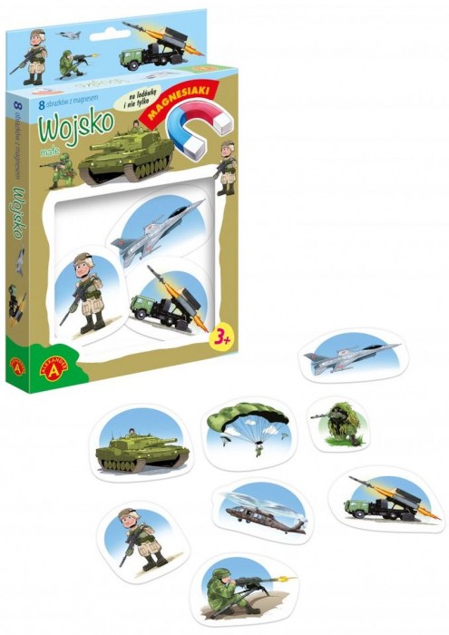 Magnesiaki Małe Wojsko to zestaw tematycznych obrazków, powleczonych magnetyczną folią na odwrocie. Dzięki temu obrazki można układać nie tylko na stole lub podłodze, można je również ustawiać na pionowej ścianie lodówki lub innych metalowych płaszczyznach. Serię wyróżnia przede wszystkim bardzo ładna grafika, duże rozmiary, oraz gruba tektura, pozwalająca dzieciom na łatwy chwyt. Strona z obrazkiem powleczona została folią, aby łatwo było je czyścić