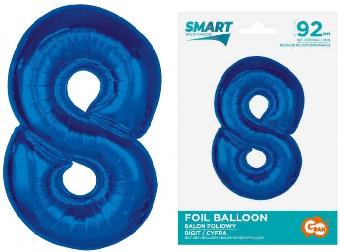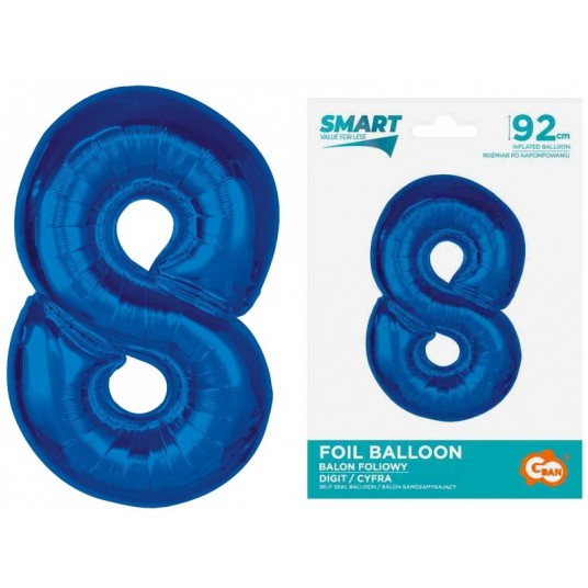 BALON FOLIOWY 92CM NIEBIESKI CYFRA 8