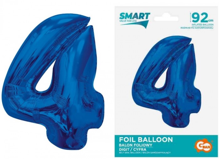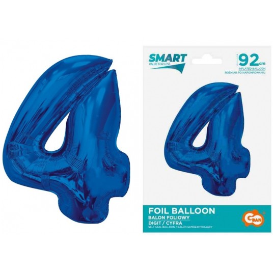 BALON FOLIOWY 92CM NIEBIESKI CYFRA 4