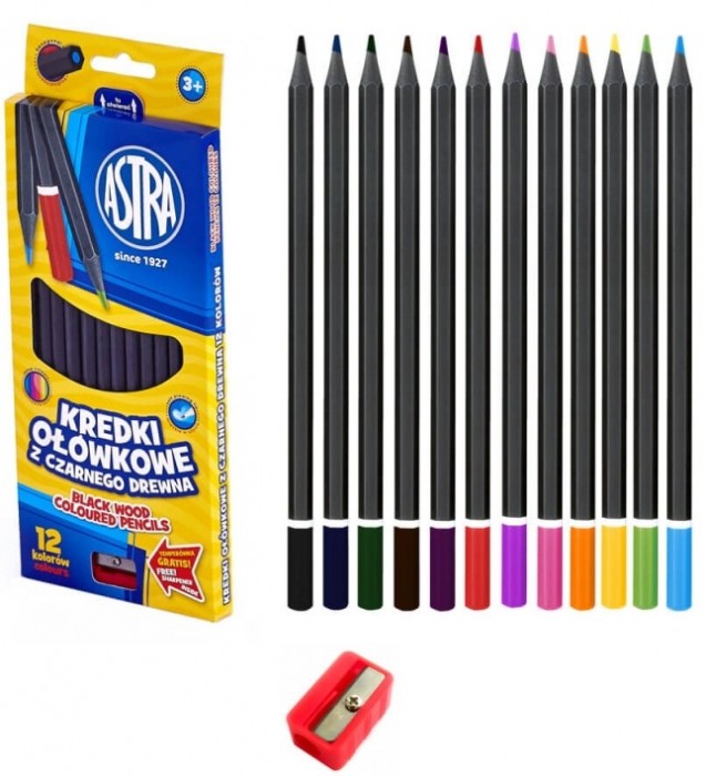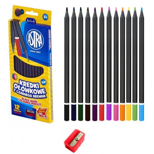 KREDKI OŁÓWKOWE 12 KOL CZARNE DREWNO ASTRA