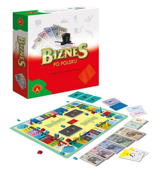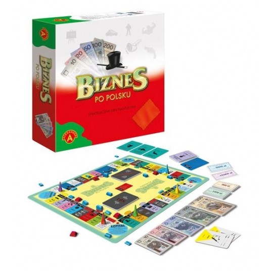 plansza, karty „Los” - 8 szt., karty „Niespodzianka” - 9 szt., karty „Dowód własności” - 23 szt., karty „Zawód” - 5 szt., karta „Poseł” - 1 szt., karta „Senator” - 1 szt., karta „Radny Rady Miasta” - 1 szt., karty „Legitymacja Partyjna” - 2 szt., Karty „Zasiłek” - 5 szt., pionki - 5 szt., kostka do gry, banknoty: 200 zł - 25 szt., 100 zł- 25 szt., 50 zł- 25 szt., 20zł - 25 szt., 10 zł - 25 szt., czeki: 10000 zł - 4 szt., 5000 zł - 11 szt., 1000 zł - 20 szt., 500 zł - 35 szt., elementy 1-krotnego stopnia inwestycji - 40 szt., elementy 5-krotnego stopnia inwestycji - 15 szt., instrukcja do gry.