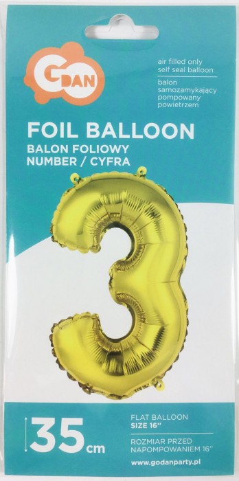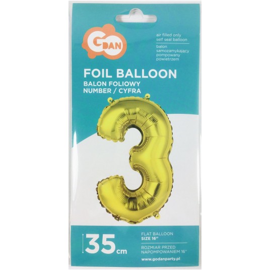BALON FOLIOWY 35CM CYFRA ZŁOTA 3