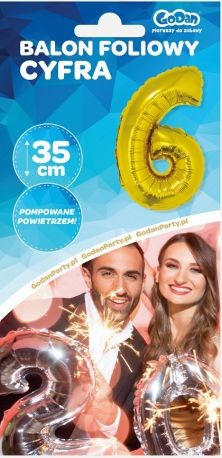 BALON FOLIOWY 35CM CYFRA ZŁOTA 6