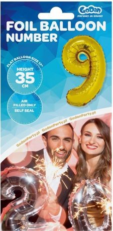 BALON FOLIOWY 35CM CYFRA ZŁOTA 9