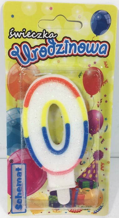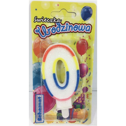ŚWIECZKA URODZINOWA BROKATOWA "0"