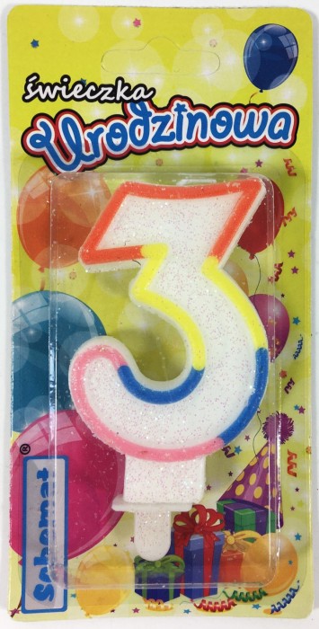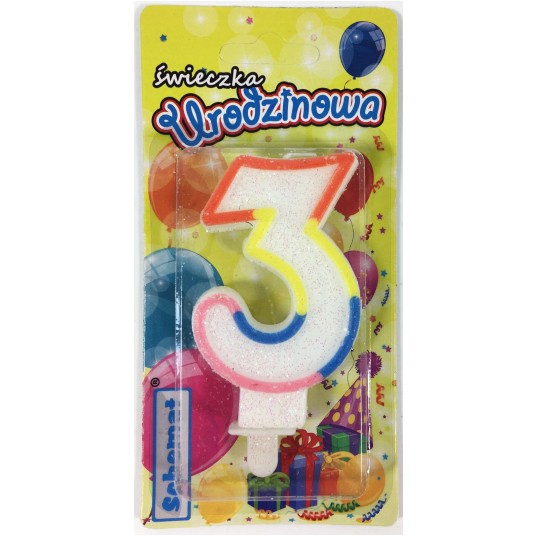 ŚWIECZKA URODZINOWA BROKATOWA "3"