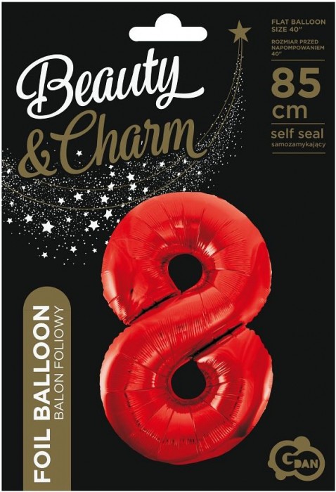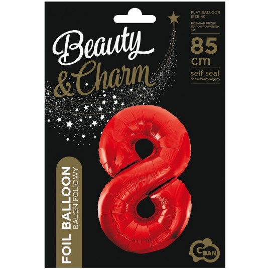 BALON FOLIOWY 85CM CZERWONY CYFRA 8