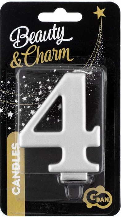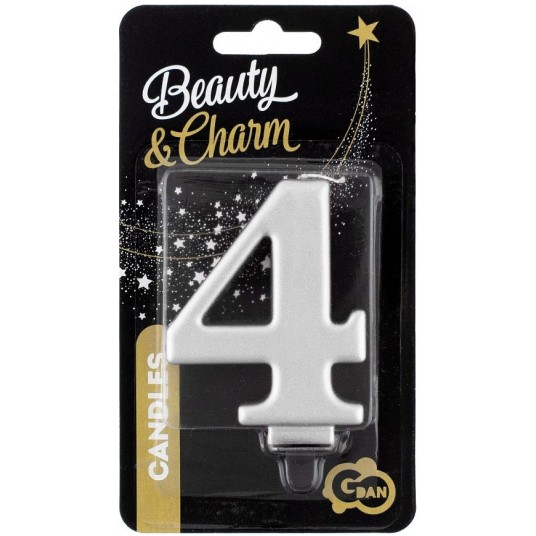 ŚWIECZKA CYFERKA SREBRNA "4" METALIK 8cm