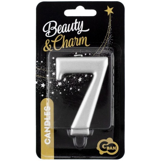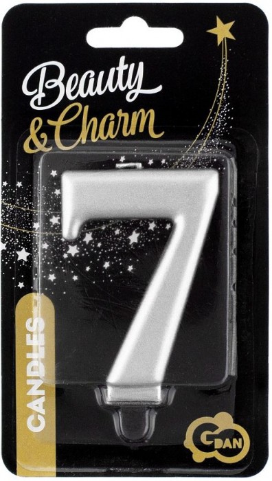 ŚWIECZKA CYFERKA SREBRNA "7" METALIK 8cm