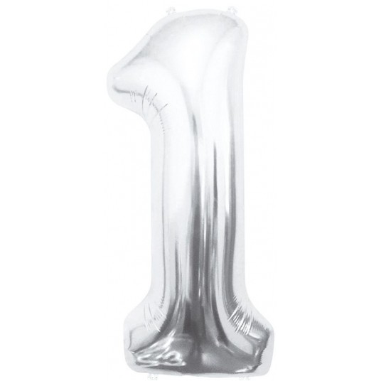 BALON FOLIOWY 85CM SREBRNY CYFRA 1