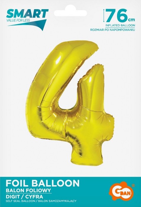 BALON FOLIOWY 76CM ZŁOTY CYFRA 4