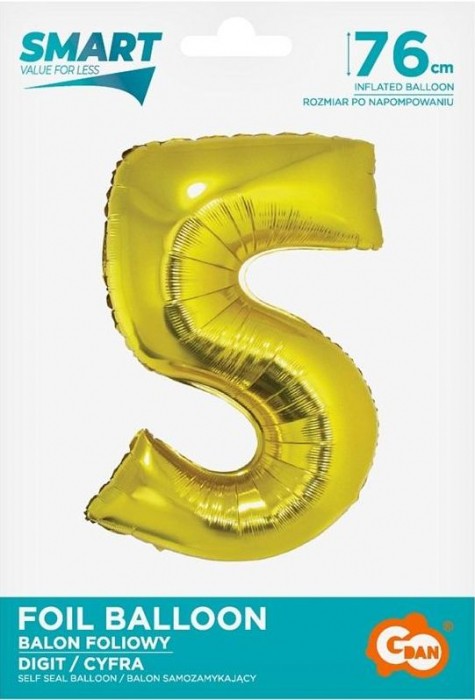 BALON FOLIOWY 76CM ZŁOTY CYFRA 5