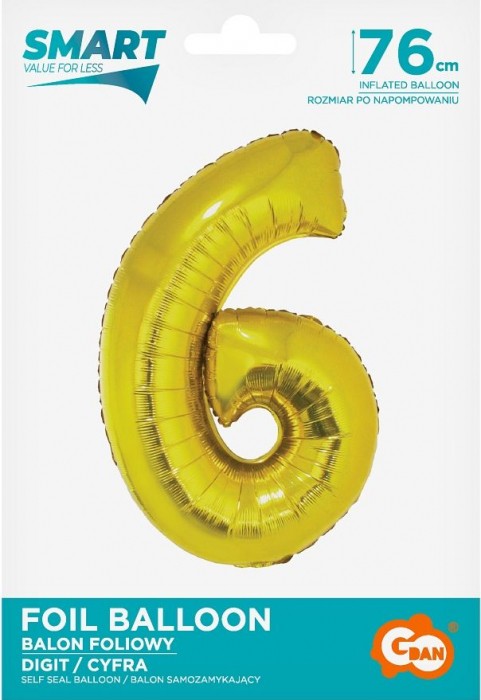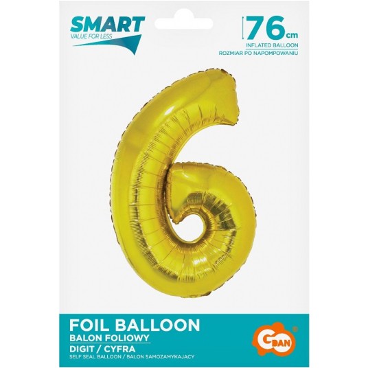 BALON FOLIOWY 76CM ZŁOTY CYFRA 6
