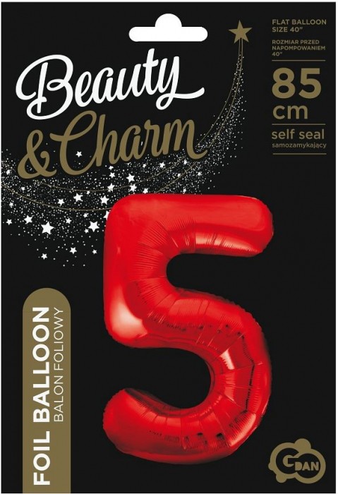 BALON FOLIOWY 85CM CZERWONY CYFRA 5