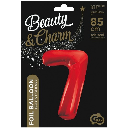 BALON FOLIOWY 85CM CZERWONY CYFRA 7