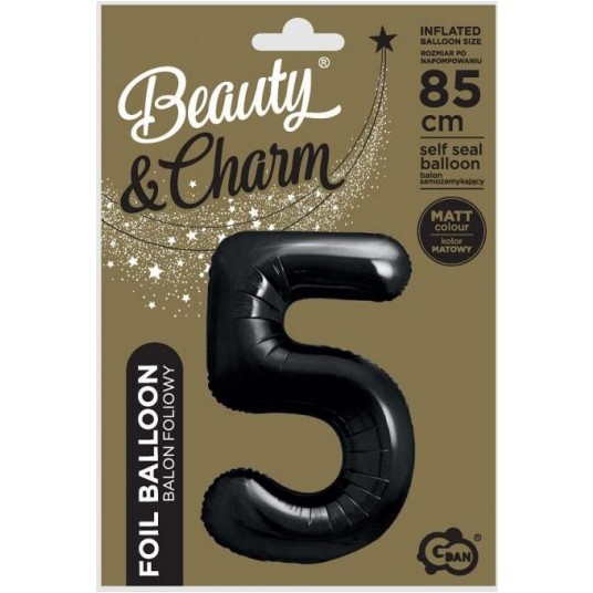 BALON FOLIOWY 85CM CZARNY CYFRA 5