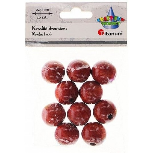 KORALIKI DREWNIANE BRĄZOWE 25MM 10SZT.