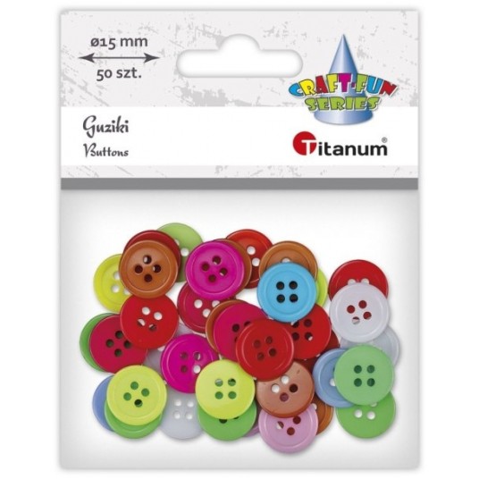 GUZIKI PLASTIKOWE KOLOROWE15MM 50 SZT.