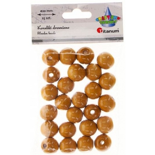 KORALIKI DREWNIANE 20MM 25 SZT. BRĄZOWE