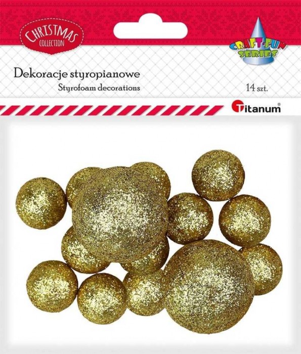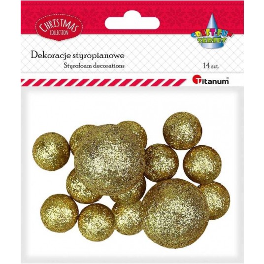 KULKI STYROPIANOWE ZŁOTE 15MM + 30MM 14 SZT.
