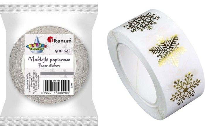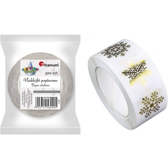 NAKLEJKI NA ROLCE 500 SZT. ŚNIEŻYNKI ZŁOTE