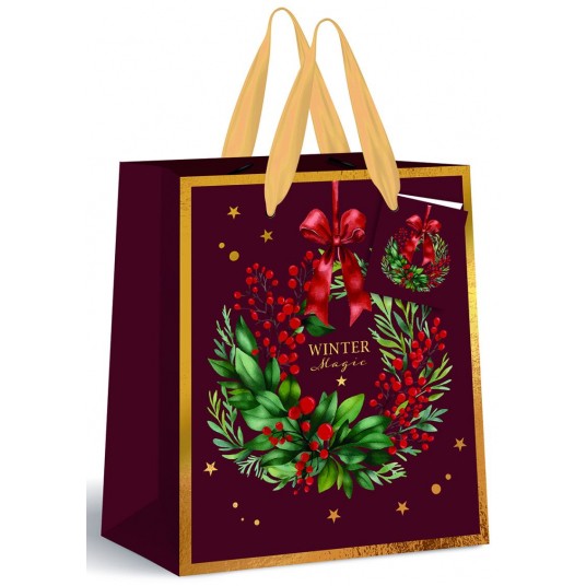 TORBA PREZENTOWA S ŚWIĄTECZNA BURGUND INTERDRUK