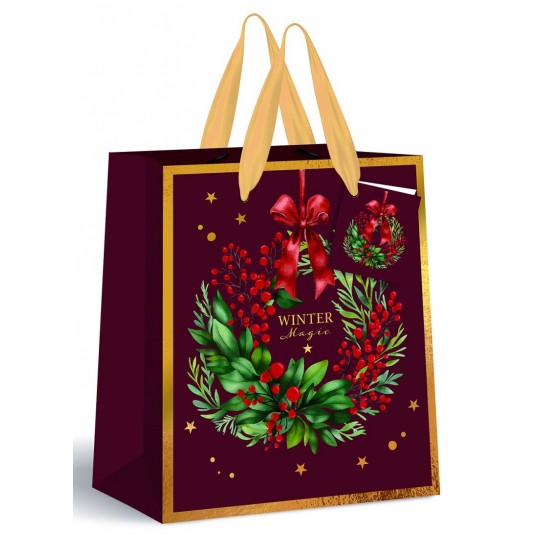 TORBA PREZENTOWA M ŚWIĄTECZNA BURGUND INTERDRUK