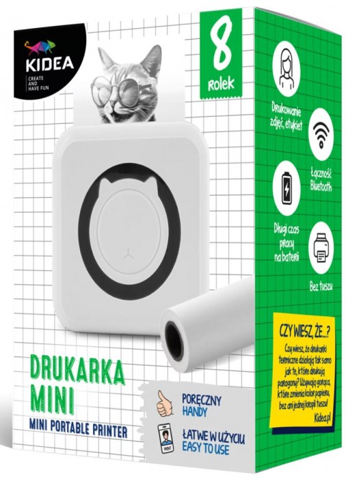 DRUKARKA TERMICZNA MINI + 8 ROLEK KIDEA