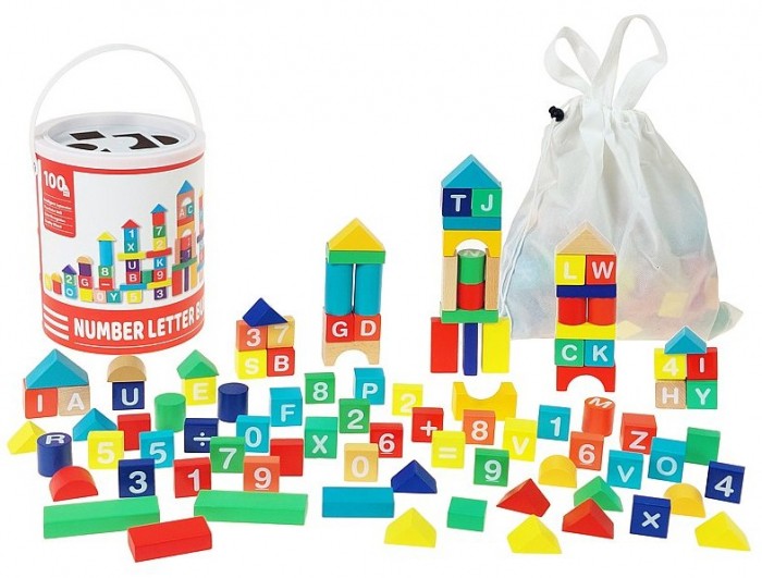 KLOCKI DREWNIANE 100 EL. Z CYFERKAMI WIADERKO